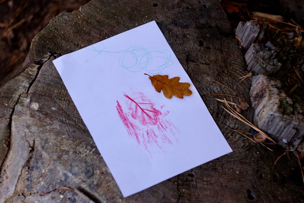 Stačí mít jenom papír a voskovku nebo křídu a může se v lese tvořit!